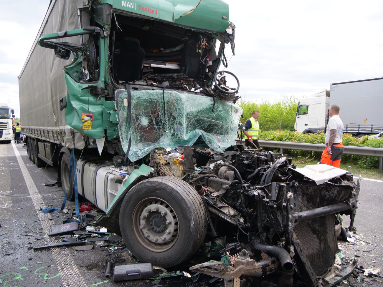 Beluzsárné Belicza Andrea tájékoztatása szerint a román rendszámú kamion ütközött neki egy idősebb magyar férfi által vezetett kamionnak, amely ezt követően egy szintén magyar férfi által vezetett kamionnal karambolozott. A balesetben a román kamiont vezető férfi súlyos, életveszélyes sérüléseket szenvedett, míg utasa, egy 59 éves román állampolgárságú nő a helyszínen elhunyt.