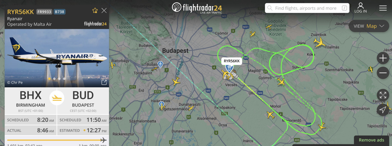 A Flightradar24 oldal képei szerint a Ryanair birminghami járata, egy Boeing 737-800-as többször megközelítette repülőtér leszállópályáját, de nem landolt, hanem több kört írt le Sülysáp, Dány és Kóka körzetében, majd harmadik kísérletre sikeresen leszállt.