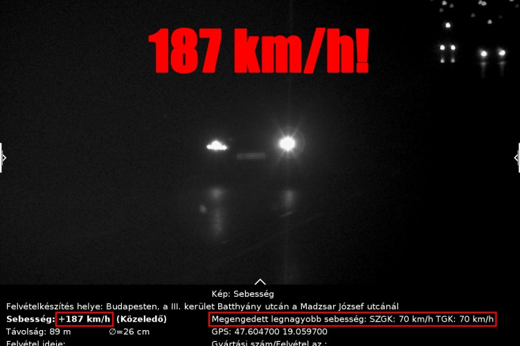 Két kirívó eset is akadt: az egyik autós a Hadrianus utcánál a megengedett 70 km/h helyett 187 km/h-val közlekedett, míg egy másik járművezető a Királyok útján 40-es sebességhatárnál 72 km/h-val hajtott – írja a police.hu.