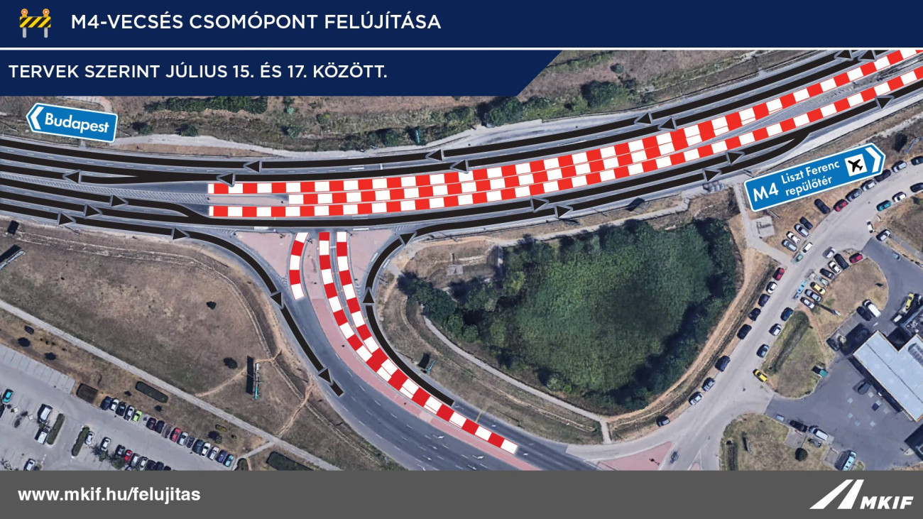 - Július 15-18. között: Budapest felé és a repülőtér irányába is csak 1-1 sáv lesz járható