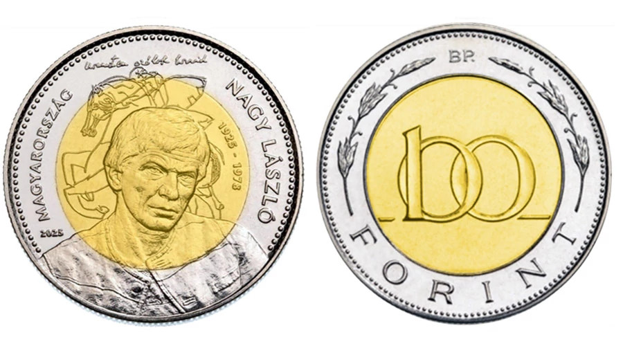 A belső mag jobb oldalán körívben olvashatók az „1925-1978” évszámok, mely a költő születésének és halálozásának idejét jelölik. A külső körgyűrűben, a körívet követve jobb oldalon a „NAGY LÁSZLÓ” felirat, bal oldalon a kibocsátóra utaló „MAGYARORSZÁG” felirat, alatta vízszintesen a kibocsátás évére utaló 2025-ös évszám található.