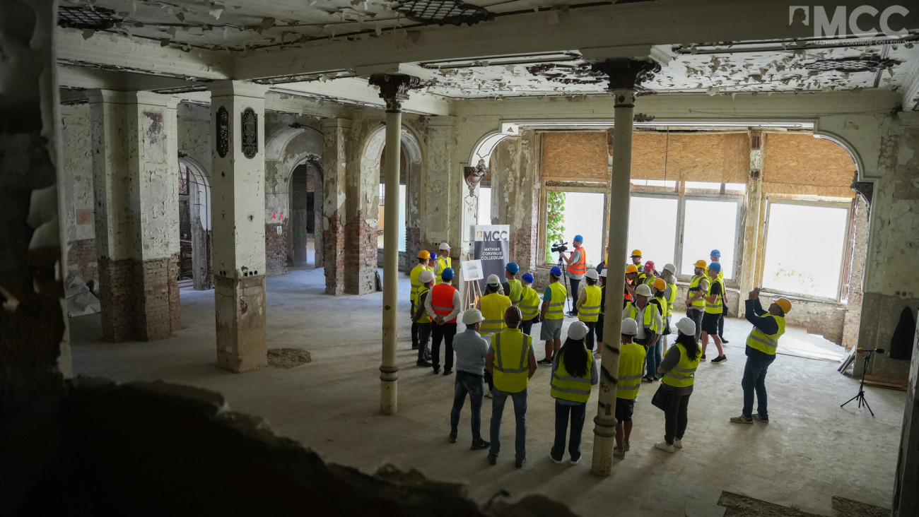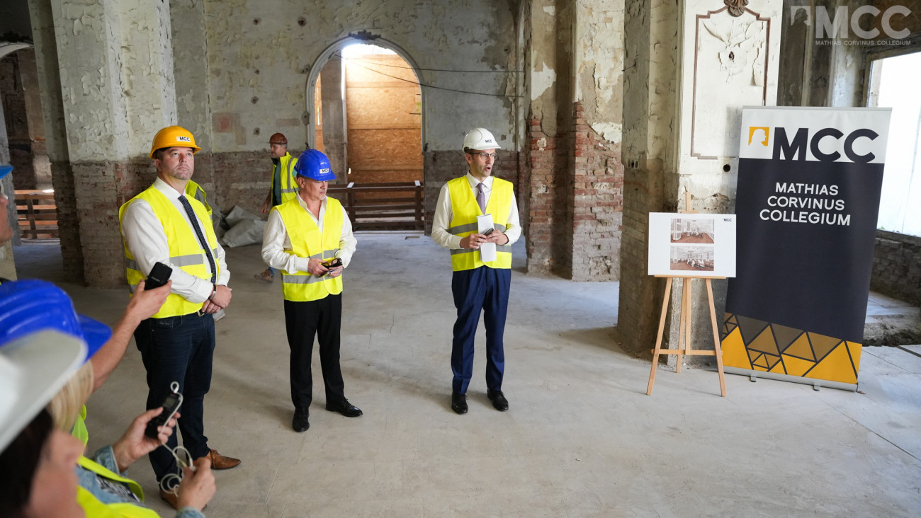 Szalai Zoltán, a Mathias Corvinus Collegium főigazgatója, Tóth-Szántai József, Miskolc polgármestere és Hollósy András alpolgármester sajtóbejárást tartott az egykori Korona/Avas Szálló épületében, amely a beruházásnak köszönhetően az MCC harmadik legnagyobb központjává válhat, valódi közösségi térként otthont adva a diákoknak.