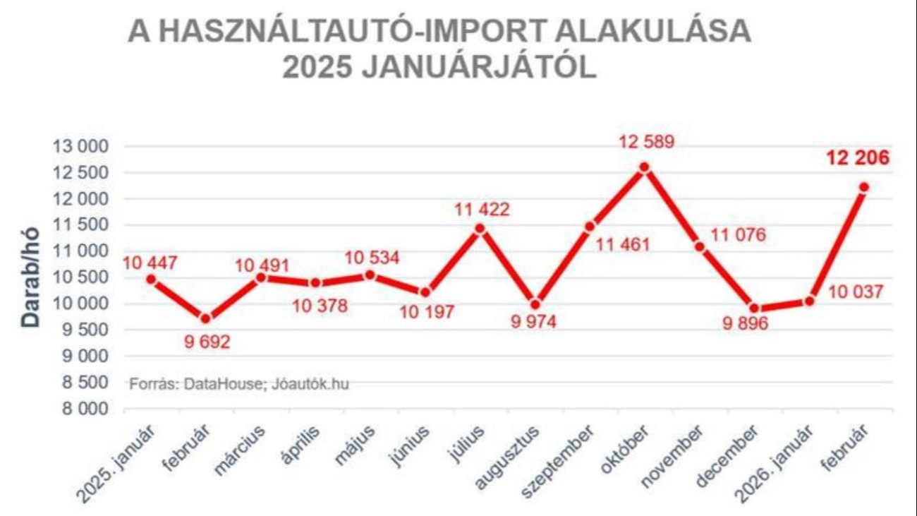 Februárban 12 206 külföldről behozott személyautó kapott magyar rendszámot, 26 százalékkal több, mint egy éve – közölte a joautok.hu a Datahouse adataira hivatkozva.