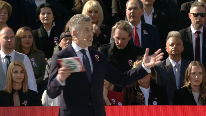 Elindult a Békemenet vasárnap fél tizenkettőkor a Margit híd budai hídfőjétől a Kossuth térre, ahol Orbán Viktor miniszterelnök mond majd beszédet a március 15-i díszünnepségen.