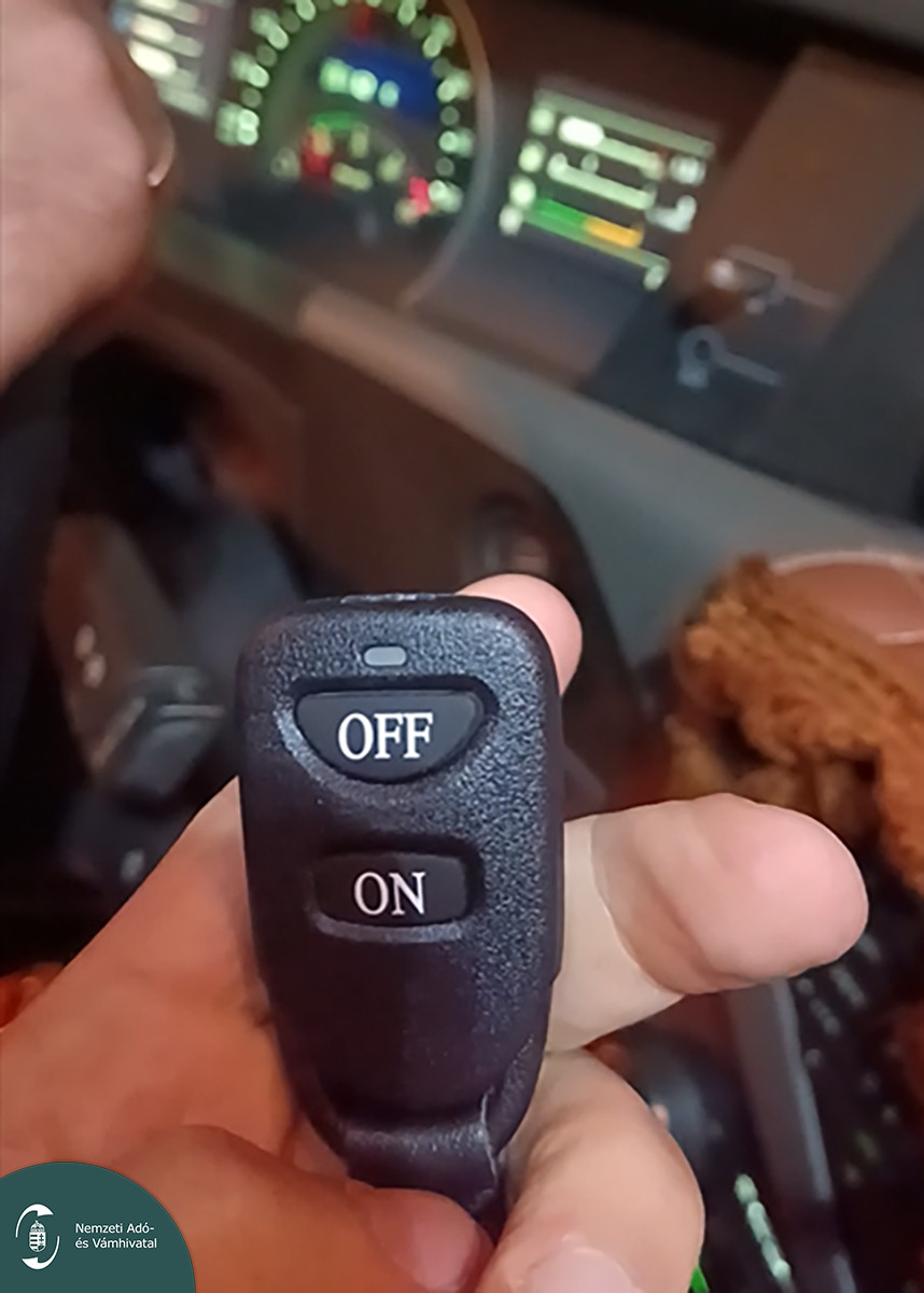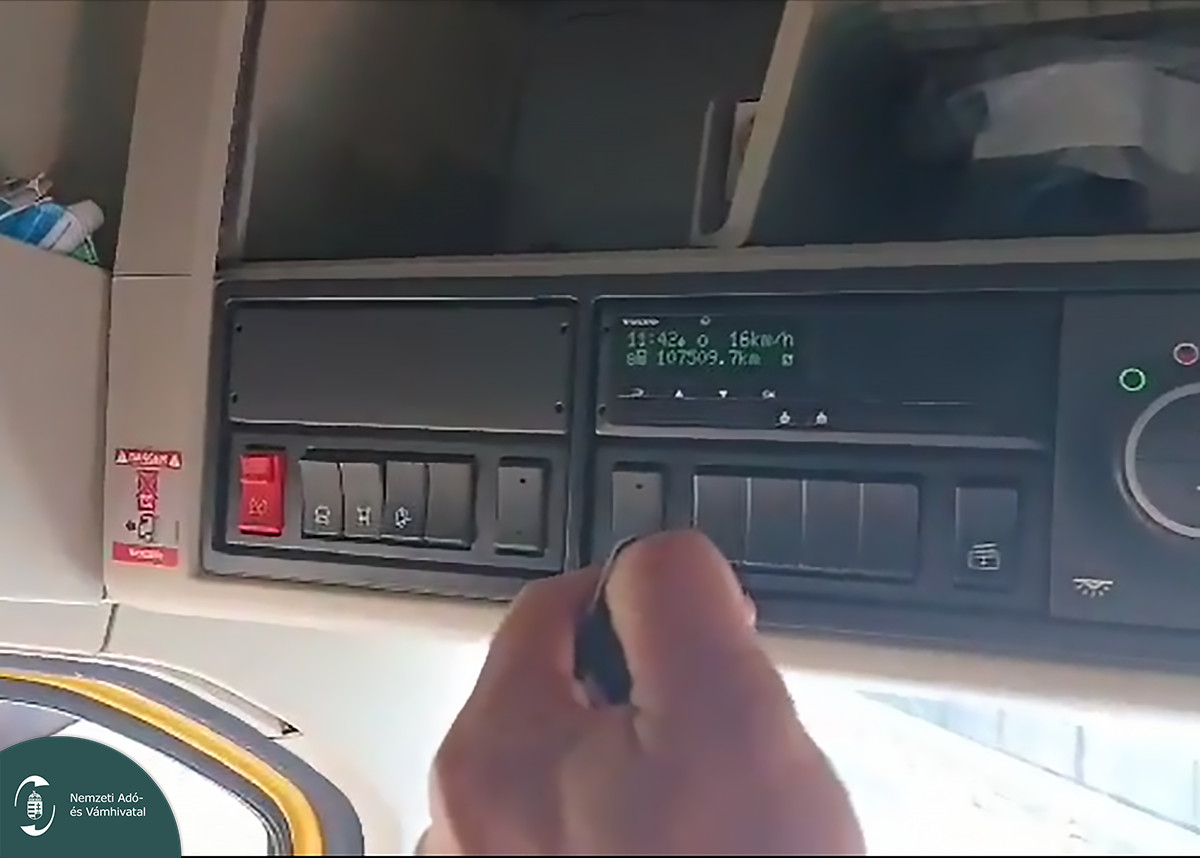 A NAV pénzügyőrei egy török kamionost ellenőriztek az M5-ös autópályán, amikor a jármű műszerfalának tároló rekeszében egy távirányítót találtak. Az eszköz egyik gombjának lenyomásával a tachográf pihenőidőt rögzített vezetés helyett, a másik gombbal pedig újra üzembe lehetett helyezni azt. Egy nappal később az M4-es autóúton bukott le egy ukrán férfi, aki szintén egy távirányítót rejtett el a jármű fülkéjében - írta közleményében a NAV.