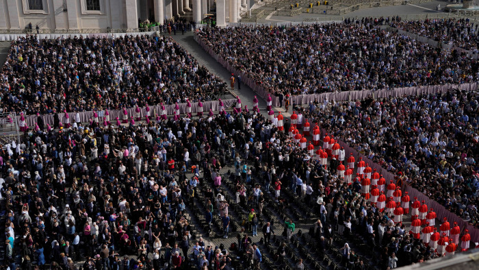 Több tízezer hívő gyűlt össze szerdán a római Szent Péter-bazilikánál, hogy leróják kegyeletüket az elhunyt Ferenc pápa ravatalánál, akinek a koporsóját reggel vitték át az épületbe.