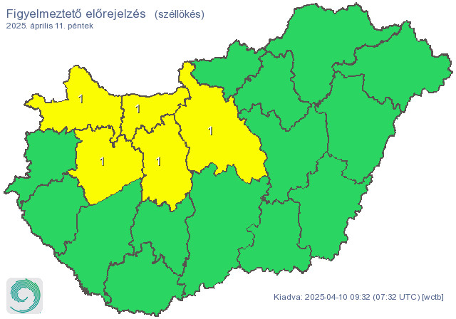 Pénteken az ország északi, északkeleti felén nagy területen marad erősen felhős vagy borult az ég, míg másutt a fátyolfelhők mellett több órára kisüt a nap, majd délutántól már a Dunántúlon is erőteljes felhősödés valószínű. Napközben elsősorban az északkeleti, keleti harmadban, később nyugatabbra is növekvő eséllyel lehet számítani gyenge esőre, záporra. Ismét sokfelé megerősödik, elsősorban az Észak-Dunántúlon, a főváros környékén olykor viharossá fokozódik az északnyugati, északi szél. A legmagasabb nappali hőmérséklet általában 14-23 fok között várható, de az északkeleti negyedben ennél több fokkal hűvösebb maradhat az idő.