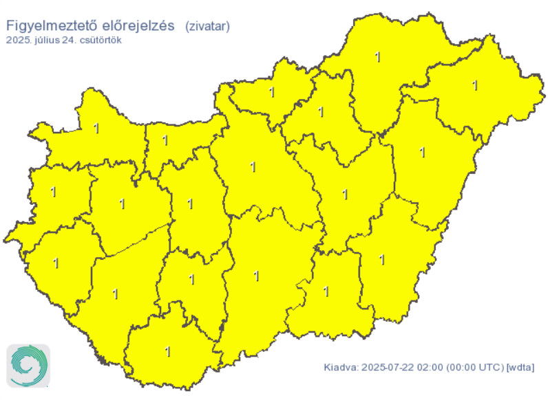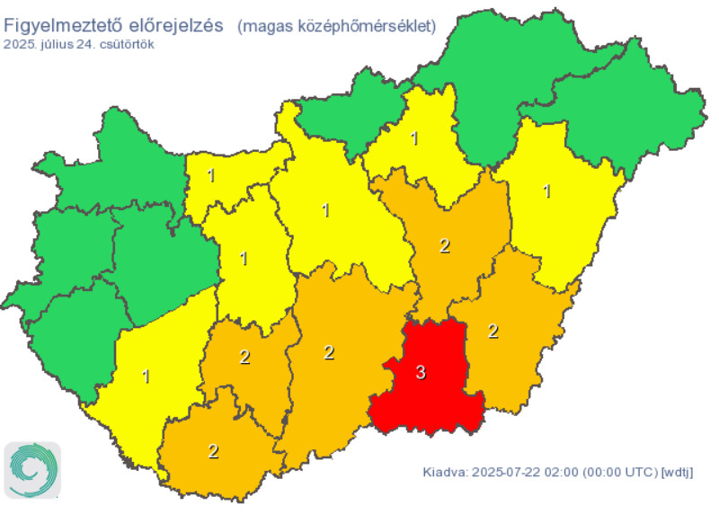 Csütörtökre a magas középhőmérséklet miatt már piros figyelmeztetést is kiadtak, de zivatarokra is számítani lehet: