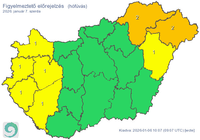 Éjfélig általában néhány cm, míg a Tiszántúlon 5 cm, helyenként a keleti határ mentén 10 cm körüli friss hóréteg is hullhat. Főként a nap első felében az Északnyugat-, Nyugat-Dunántúlon és északkeleten lehet