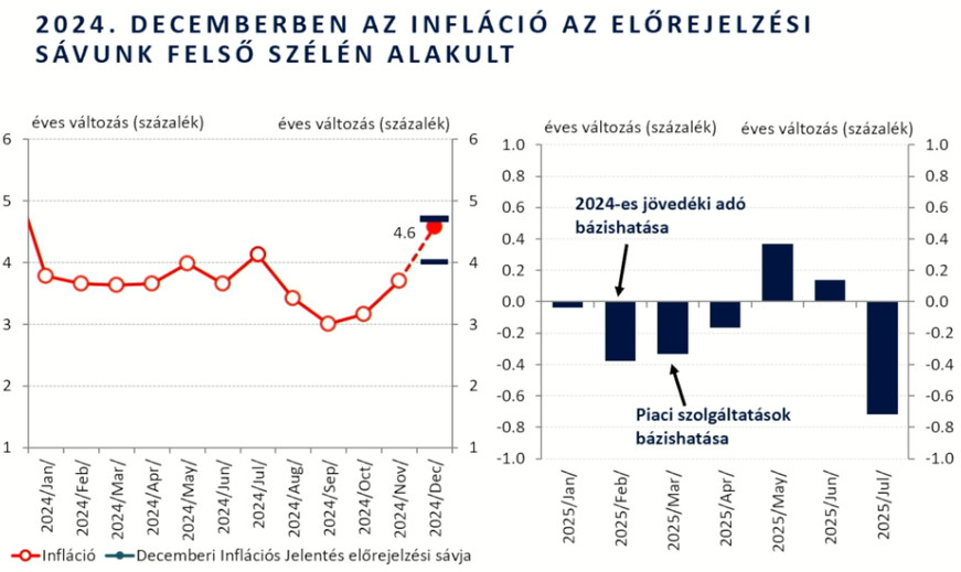 Az infláció az MNB várakozásainál magasabb szinten alakult decemberben (4,6 százalék), ami pedig a kilátásokat illeti, "intő jelek vannak", de a szolgáltató szektor áremeléseinek visszaesése visszafoghatja a pénzromlás ütemét.