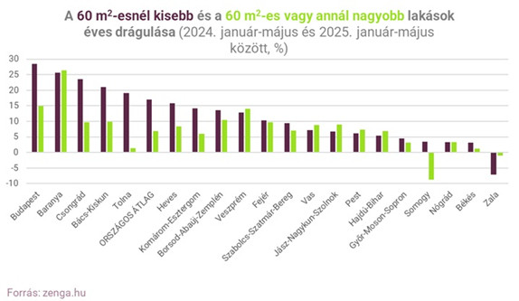 A zenga.hu elemzési vezetője az InfoRádióban elmondta: az elsőlakás-vásárlók jellemzően kisebb méretű, olcsóbb lakásokat keresnek, így ők érzik meg legjobban a drágulást, ugyanis az elmúlt fél-egy évben éppen a 40 négyzetméter alatti vagy a 40-60 négyzetméter közötti méretű ingatlanok ára emelkedett a legnagyobb mértékben a fővárosban. Futó Péter hozzátette: a garzonlakások fele a budapesti kínálatot fedi le, ahol átlagosan nagyjából másfél millió forintos négyzetméterárak vannak jelenleg, miközben a nagyobb méretű lakások fajlagosan ennél jóval olcsóbbak.