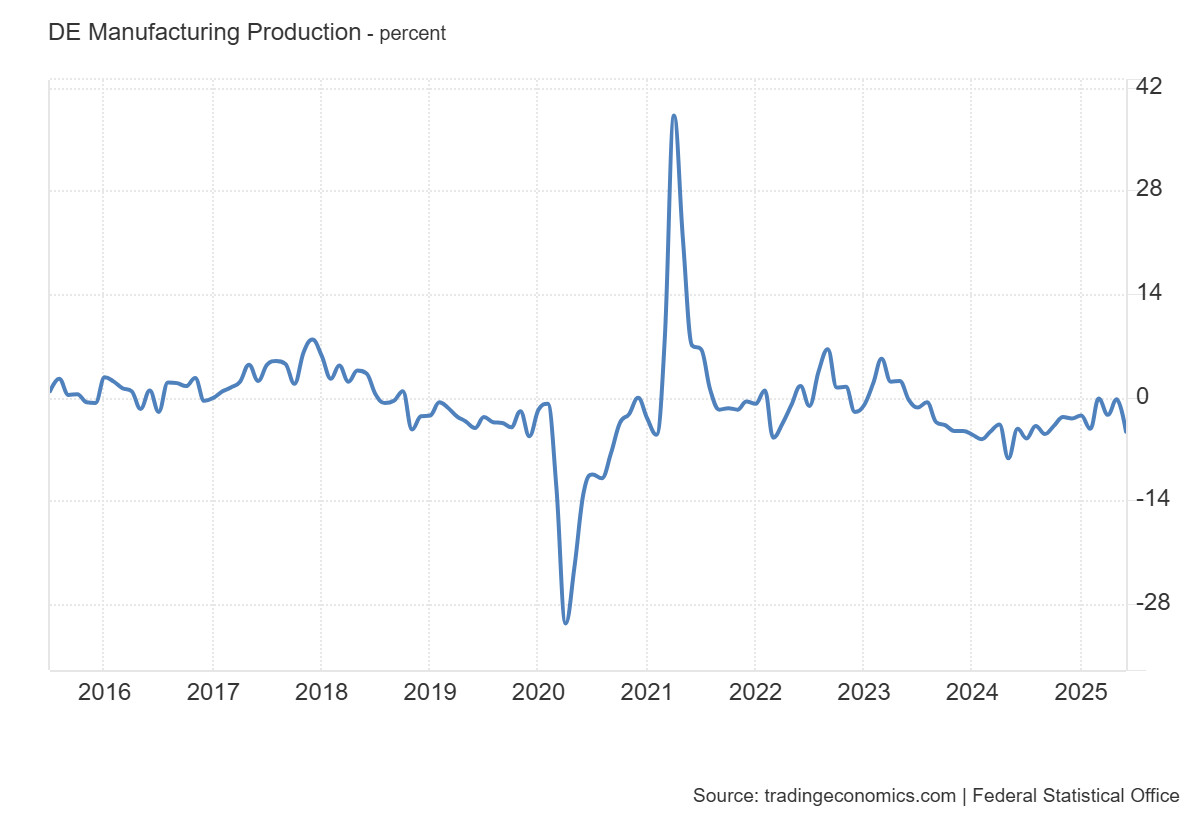 2024–2025-re a mutató közel nullszaldó körül stabilizálódott, ami gyakorlatilag stagnálást jelent. Ez önmagában nem összeomlás, de intő jel, hogy a feldolgozóipar már nem tudja ugyanazt a dinamikát biztosítani, amely korábban a német gazdaságot előre vitte.