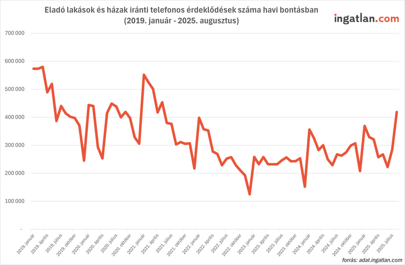 Augusztusban – a DKT-Gemius által auditált adatok alapján – több mint kétmillió valós felhasználó keresett az ingatlan.com-on, és az eladó lakásokra és házakra több mint 410 ezer telefonos érdeklődést adtak le – ismertette Balogh László, az ingatlanportál vezető gazdasági szakértője az InfoRádióban.