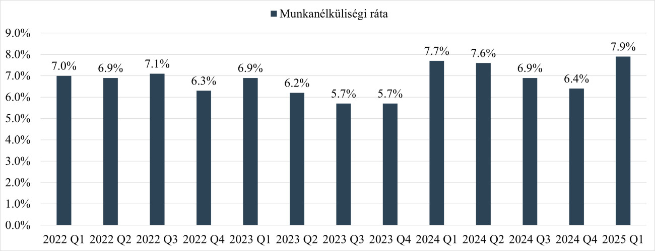 Bár 2024 során csökkenő tendencia volt megfigyelhető, 2025 első negyedévére a munkanélküliség négyéves csúcsot ért el, ami további kedvezőtlen társadalmi következményekkel járt.