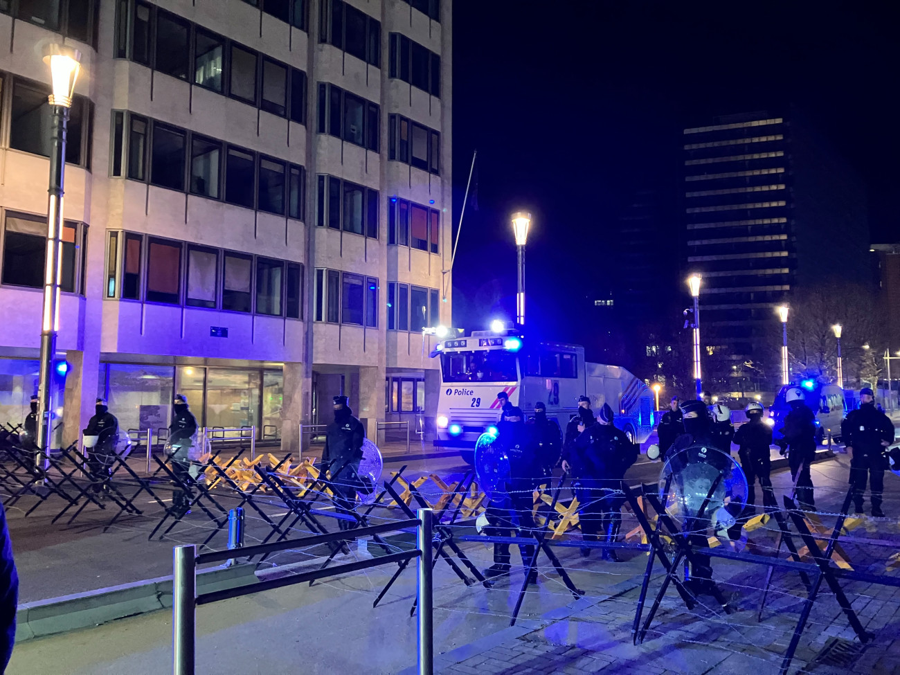 A demonstrálók felsorakoztak a Rue de la Loi-n, és javarészt beszélgetéssel mulatták az időt. Néha előkerült egy-egy petárda, aztán két olajoshordó is, amelyekben aztán hatalmas tüzet gyújtottak.