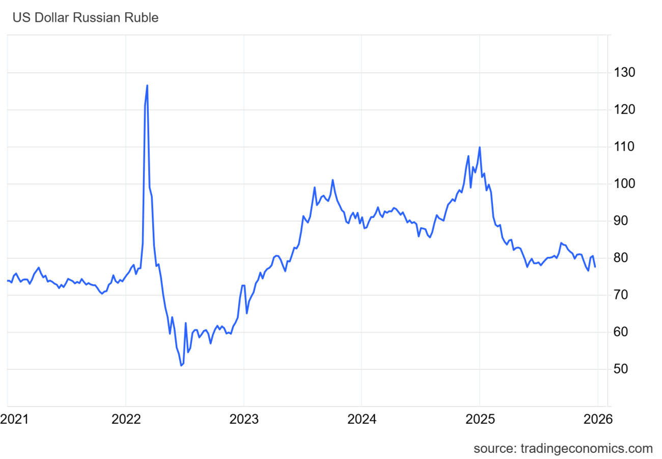 2025-ben három, egymástól politikailag, intézményileg és gazdaságszerkezetileg is távoli ország valutája került az élmezőnybe a devizamozgások alapján. Az orosz rubel mintegy harminc százalékkal erősödött az amerikai dollárral szemben. A nagy medve fizetőeszközét a magyar forint és a svéd korona követte közel húszszázalékos felértékelődéssel. Az alábbiakban arra a kérdésre keresem a választ, hogy hogyan lehetséges, hogy ennyire eltérő gazdasági modellek hasonló árfolyamkimenetet produkálnak.