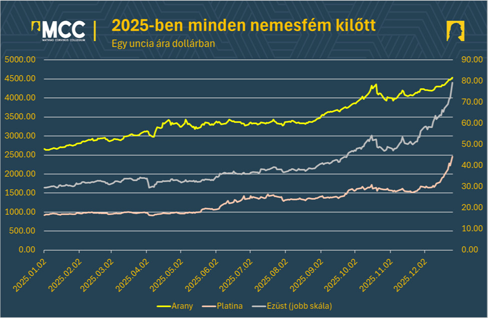 2026-ban persze újabb fordulat jöhet. Ha a Fed vagy az EKB kevésbé lesz galamblelkű, ha a reálhozamok emelkednek, az nem tenne jót a nemesfémek árának. És ha a platina kínálati gondjai enyhülnek, vagy az ezüst ipari kereslete lassul, akkor a fundamentumok is gyengébbek lesznek.