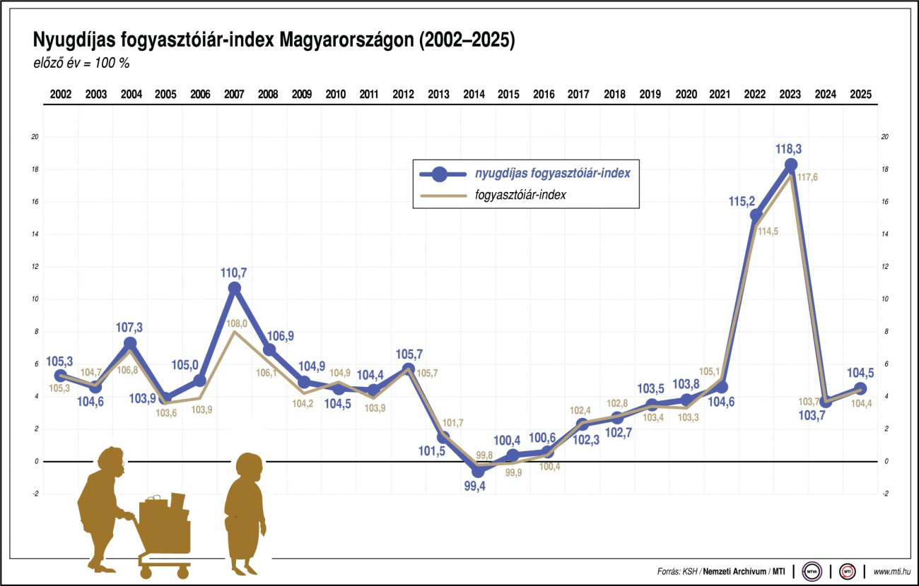 A nyugdíjas infláció havi alapon nem változott, éves alapon 3,3 százalék volt 2025 decemberében.