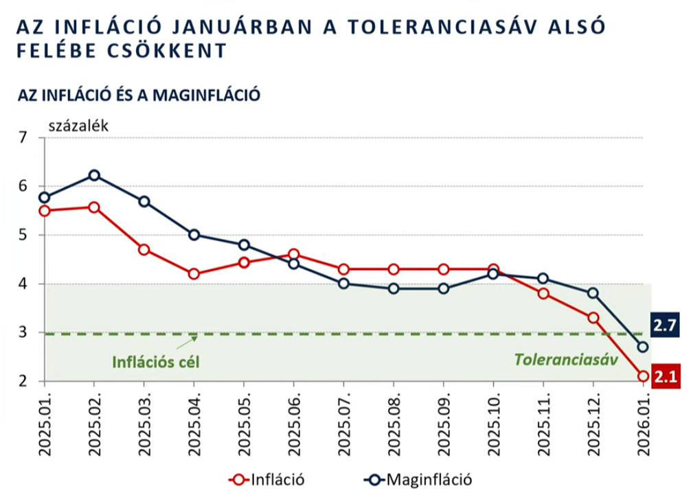 Az infláció adatait elemezve hangsúlyozta, a 2,1-es szám már bőven a toleranciasávban van, és ott is marad, annak felső szélét legfeljebb az év végén közelítheti meg.