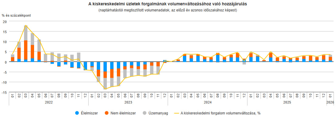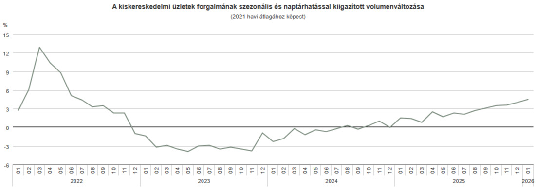 Regős Gábor, a Gránit Alapkezelő vezető közgazdásza szerint alapvetően nem annyira meglepő a kiskereskedelmi forgalom KSH-adatokból kirajzolódó bővülése, hiszen a háztartások rendelkezésre álló jövedelme növekedett, az infláció pedig alacsony szinten volt; januárban 2,1 százalékos volt a pénzromlás üteme.