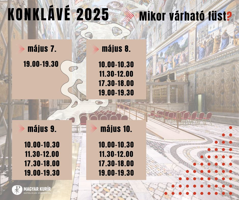 Az első és szerdán egyetlen szavazási kör azonnal megkezdődik, eredménye este 7 és fél 8 között várható a Sixtus-kápolna tetejére erősített kéményből. Sikeres választás esetén fehér füst száll fel, sikertelen választás esetén viszont fekete. A pápa megválasztásához a választó bíborosok kétharmadának (89 fő) egyazon személyre leadott szavazata szükséges. A konklávén addig szavaznak majd, amíg valaki mellett ki nem alakul a kétharmados többség.