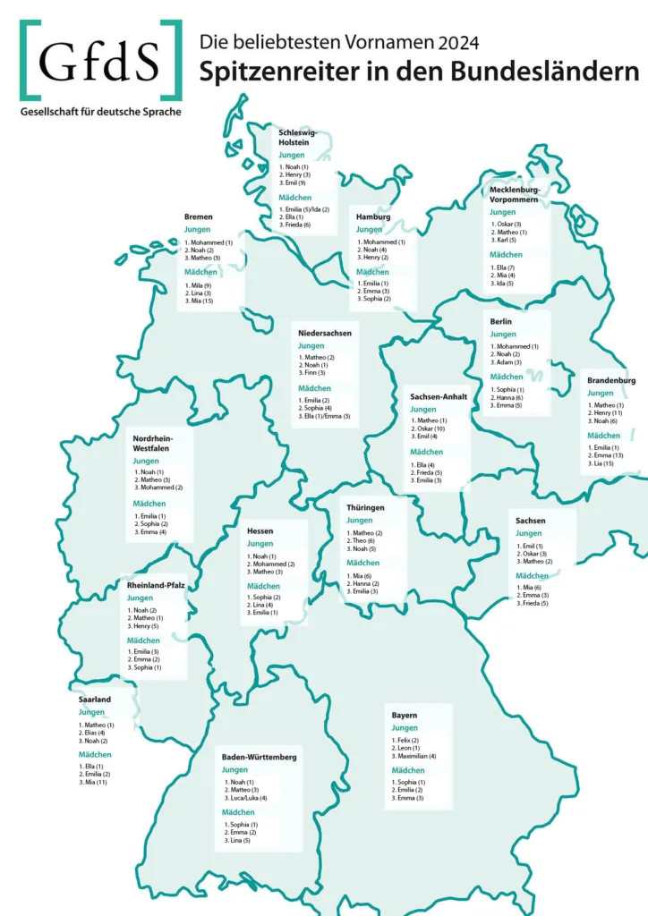 A szokásoknak megfelelően közzétették Németországban az előző esztendő legnépszerűbb lány-, illetve fiúneveinek listáját. Az első három helyen a szülők preferenciája tavaly alig változott az egy évvel korábbihoz képest. Az újszülött lányok esetében a Sophia, míg a fiúknál a Noah áll az első helyen. A Német Nyelvi Társaság Wiesbadenben nyilvánosságra hozott listája szerint a Sophiákat és a Noah-kat az Emiliák és a Mattheók követik, megelőzve az Emmákat és a Leonokat. A Sophia egyébként az Emiliák rovására 2023-ban ugrott az elő helyre, amelyet tavaly is megőrzött. A Noah kiemelkedő népszerűsége 2019 óta megingathatatlan.