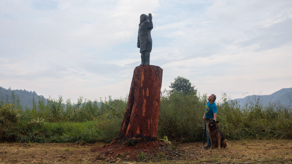 Eltűnt a Melania Trumpnak állított bronzszobor szlovéniai Sevnicában. Az alakot bokában elfűrészelték, csak a lábfejek maradtak és a hatalmas fatörzs, amin az alkotás áll - írja a BBC.