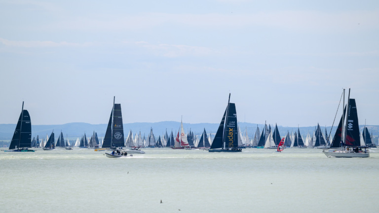 Délelőtt két esélyes is kiesett nagyszeles Kékszalagon: még a tihanyi szoros előtt feladta a versenyt Litkey Farkas és csapata a Process Solutions fedélzetén, illetve az Audax Django, amelyet Petrányi Zoltán kormányoz. A Sponsor Wantednek kettétört az árbóca – erről itt írtunk. Két katamarán is felborult, a hullámok és az erős szél miatt a Cofidis és a Fox23 is pórul járt.